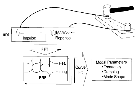 Figure 1: Illustration of a typical impact hammer modal test and signal processing