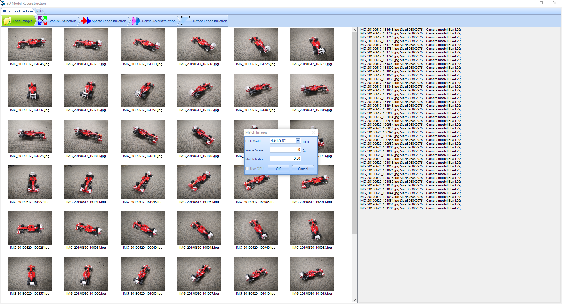 Figure 5 - Images loaded into the EDM 3D Reconstruction software